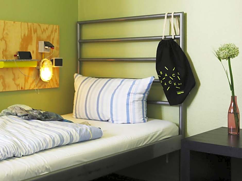 Furnished in functional style, the room includes lockers, a sink, and has use of shared bathroom facilities.